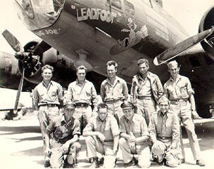 IT WAS A ROUGH DITCHING, and we had to swim like the devil to reach the rafts. Luckily, they hadn't been hit by enemy fire from the Me I09's, and I believe that saved us. We were picked up that night by the United States Navy and finally made our way back to our base in Lucera, Italy. I was scared to death, and truly think that we survived because we were all so young. I finally finished my fifty missions and was on my way back to the States when D day started. I sincerely believe that the man upstairs was looking after us that day. The members of our crew were Moore (P), Hunter (CP), Garrity (N), Upton (B), Flasiznstein (E), Frascatorf (RO), Gatrost (WG), Fish (WG), MacDonald (TG) and Mangano (LT).